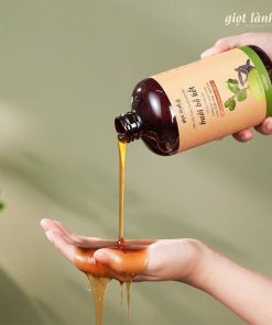 Dầu gội bưởi – bồ kết Giọt Lành sử dụng cao đun cô đặc từ nhiều loại thảo dược như: Bồ kết, bồ hòn, hà thủ ô, mần trầu, vỏ bưởi, bạc hà,… giúp mang lại màu nâu đen tự nhiên và hương thơm dịu nhẹ đặc trưng của dầu gội thảo dược.
